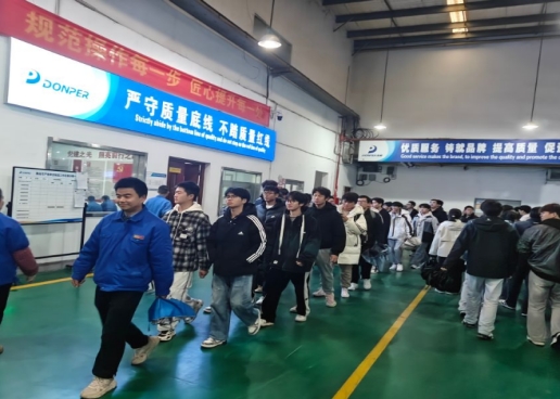 见面会伊始,在东贝集团技术员的带领下,48名产业班员工有序参观了压缩机装配加工车间。车间内,自动化生产线高效运转,技术工人精准操作,同学们近距离观察压缩机的装配流程、加工工艺,认真聆听技术员对生产设备、产品标准及行业发展趋势的讲解,直观感受东贝集团严谨的生产管理模式和深厚的技术底蕴。此次车间参观让同学们跳出课本局限,将专业理论与生产实践紧密结合,对所学专业的应用场景和职业发展有了更清晰的认知,也激发了大家的学习热情与探索欲望。