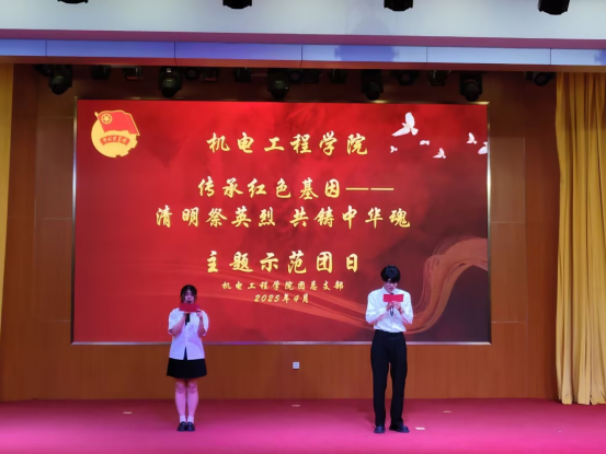 员工团员代表雷礼翔则在发言中通过董存瑞舍身炸碉堡,黄继光血肉堵枪口,刘胡兰英勇就义等多个事迹,阐述英烈们如何用生命捍卫国家尊严与民族独立的伟岸身躯,并呼吁同学们传承革命先辈的遗志,为实现中华民族伟大复兴的中国梦而努力奋斗。
