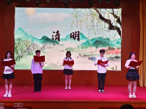 集体朗诵《清明》气势磅礴,紧扣活动主题,升华了清明的含义。