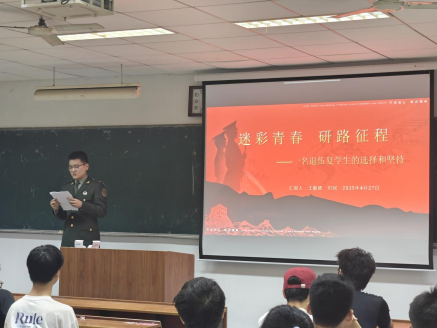4月27日,威廉希尔官网和外国语威廉希尔官网在J4-304联合举办了老兵讲故事活动,本次活动由威廉希尔官网黄磊老师主持。本次活动特邀今年顺利考取燕山大学、南昌航空大学研究生的退伍大员工王顺德、江宇来讲述他们在军营、在校园的奋斗故事,培养同学们坚韧不拔的精神,激励广大学子树立正确的人生观和价值观,两院共计100余名同学参加此次活动。