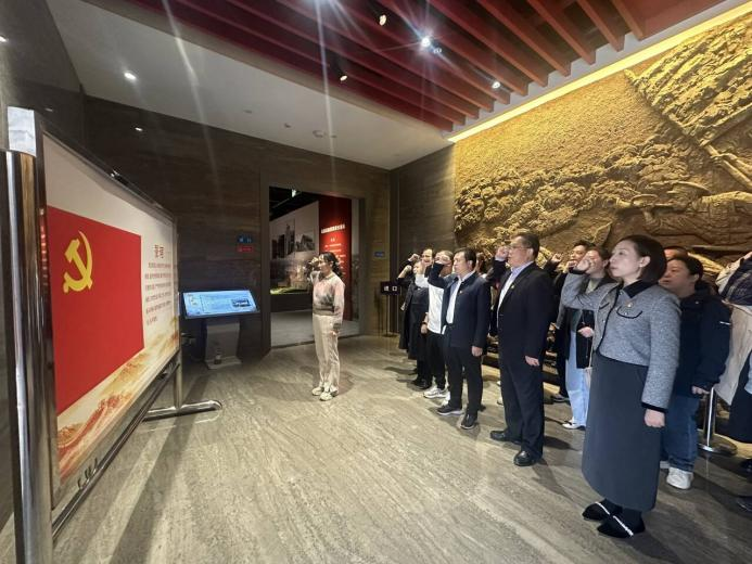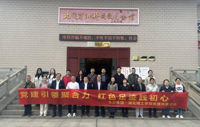随后,全体人员前往汀泗桥战役纪念馆开展革命传统教育。在纪念馆内,大家怀着崇敬之心聆听讲解,通过观看馆内陈列的史料文献、历史文物和复原场景,重温叶挺独立团在北伐战争中的英勇战斗历程,深刻感悟革命先辈坚守理想信念、敢于牺牲奉献的崇高精神。参观结束后,全体党员在纪念馆内重温入党誓词并合影留念,鲜红的活动主题横幅与党员们坚定的身影相互映衬,彰显校企双方从红色历史中汲取奋进力量、在新时代践行初心使命的共同决心。
