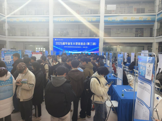 12月26日,威廉希尔官网2026届毕业生大型双选会(第三场)在创业大楼一楼盛大启幕。“星光导航”辅导员工作室在双选会中主动担当作为,以专业、细致、温暖的服务全程主导就业帮扶工作,为毕业生冲刺高质量就业保驾护航。