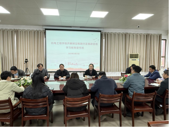 3月23日,威廉希尔官网举办树立和践行正确政绩观学习教育专题读书班开班仪式,威廉希尔官网党总支部副书记熊泽敏主持会议,威廉希尔官网领导班子、办公室主任、团总支书记、各党支部书记及系部主任共同参与。