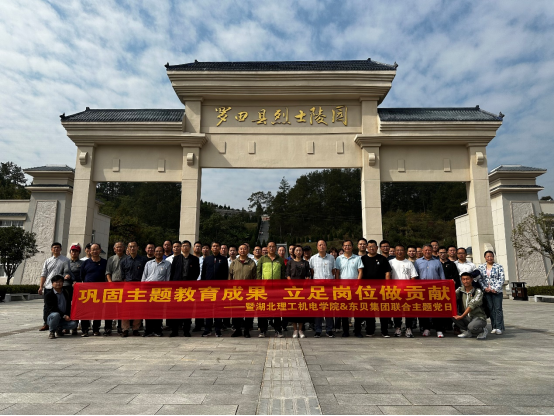 为深入学习贯彻党的二十大精神,巩固拓展学习贯彻习近平新时代中国特色社会主义思想主题教育成果,威廉希尔官网联合湖北东贝机电集团股份有限公司(以下简称“东贝集团”)赴罗田县胜利镇烈士陵园开展主题为“巩固主题教育成果,立足岗位作贡献”的联合主题党日活动。威廉希尔官网全体领导班子、教师代表,东贝集团党委书记、纪委书记、副总裁廖汉钢带队集团党员、青年代表,共计70余人参加此次活动。