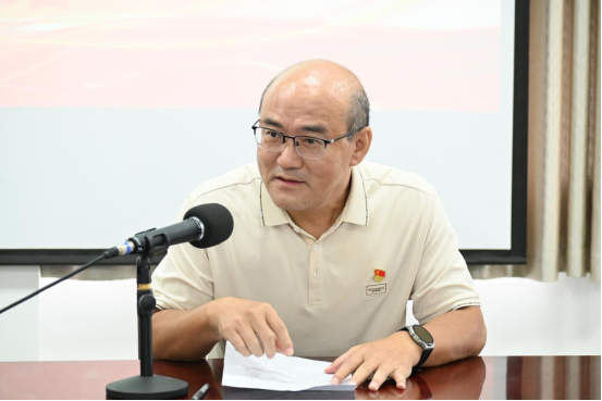 随后,在新老党员代表发言环节。26年党龄的教工党员代表徐庆华结合自身多年工作经历,深情回顾在党组织培养下的成长历程,分享坚守岗位、践行使命的感悟,寄语年轻党员把握时代机遇、勇担复兴重任。他特别强调“共产党员是一份沉甸甸的责任”,将来要在自己的岗位上继续发光发热。