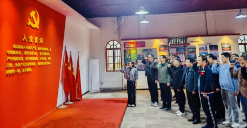 在大冶市兵暴旧址,参与活动的教职工们通过馆内工作人员的讲解、旧图、视频回顾了大冶兵暴的那段难忘的革命历史,缅怀了先烈们的丰功伟绩,全体党员在入党誓词墙前重温入党誓词,面向党旗,再一次举起右拳,庄重宣誓。