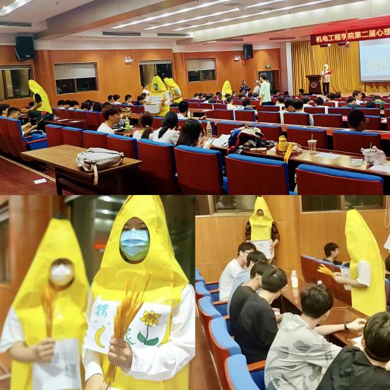 身穿“拒绝焦绿”香蕉服“使者们”怀抱烦恼箱,收集同学们所写下的便签条,让焦虑和烦恼统统“out”,并递上一束希望的麦穗。