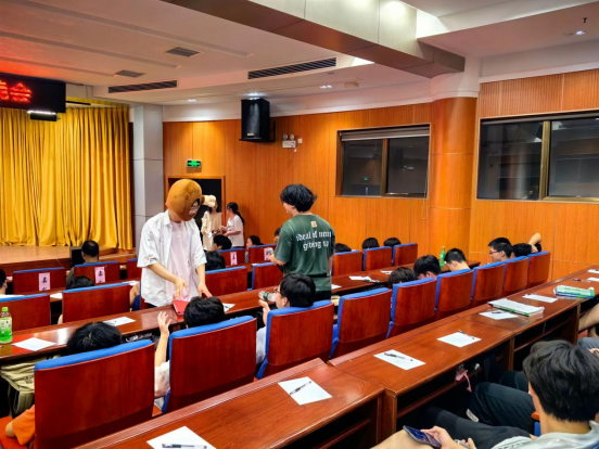 晚会期间穿插的听歌识曲、拼词组句等游戏环节,同学们摩拳擦掌、跃跃欲试,现场气氛热烈,举手频频,参与的同学都获得了纪念品。