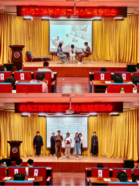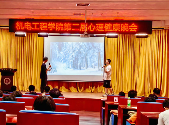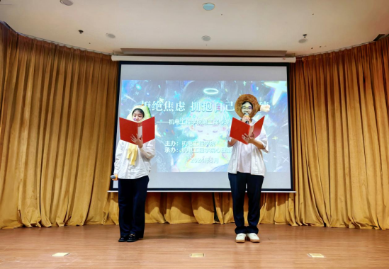 晚会伊始,主持人阐述此次心理健康晚会主旨,意在帮助机电学子在这个快节奏时代,建立良好心态,做好情绪管理,拒绝焦虑,保持元气;晚会现场提前在每个观众席上准备了便签请与会人员填写焦虑和烦恼。