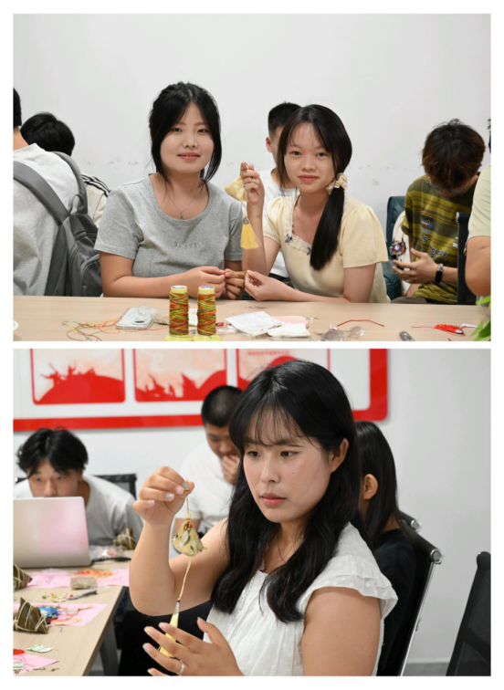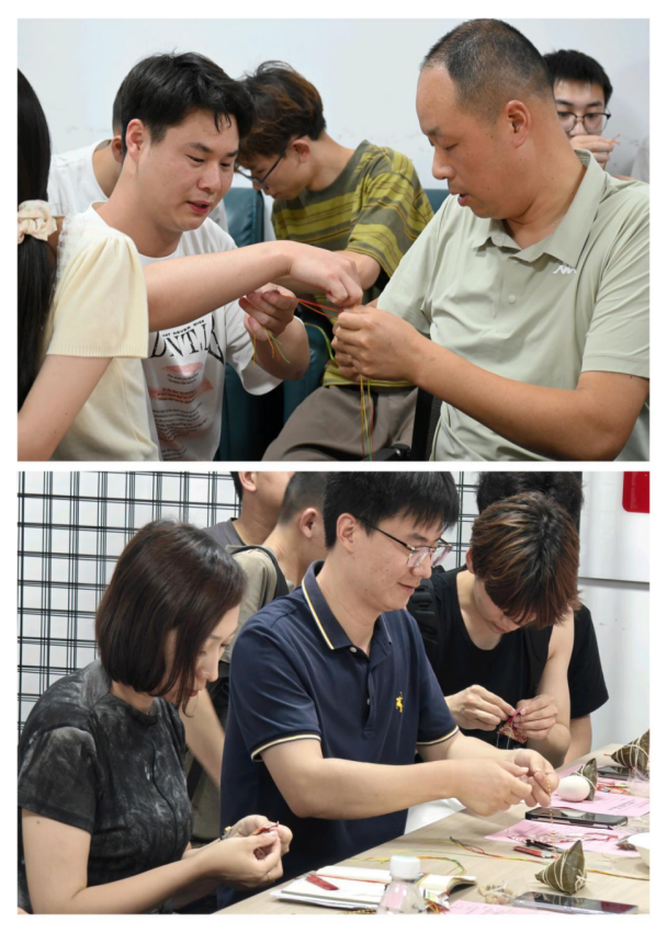 五彩绳编织环节同样热闹非凡,师生们将编织好的彩绳互赠对方,寓意祈福纳祥。