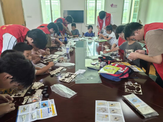 志愿者们发挥专业特长,为社区的中小员工打造了集课业辅导、科技启蒙、安全教育于一体的“七彩假期”暑假课堂。志愿者们不但化身“机械小讲师”,辅导孩子们完成暑假作业,还结合机械专业知识为孩子们设计了一系列的科技课程,借助积木拼图以及基础的纸质齿轮、零件,让孩子们直观地感受到了机械的魅力。