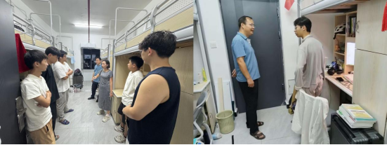 8月31日晚,威廉希尔官网全体领导班子深入员工宿舍,与首届硕士新生、返校报到员工亲切交流,详细询问员工的假期生活、学习计划和思想动态,耐心倾听员工在生活和学习中遇到的困难和问题,并给予针对性的建议和指导。在检查宿舍安全卫生时,重点查看了宿舍用电设备、消防设施等是否存在安全隐患,同时督促员工做好宿舍卫生清洁,保持良好的生活环境。