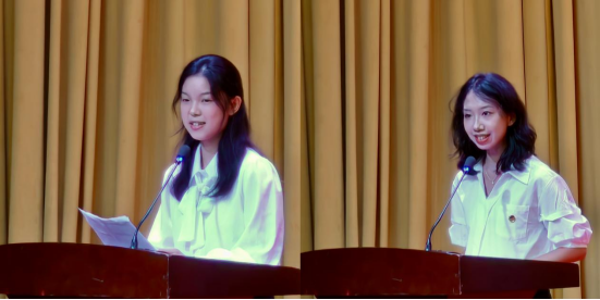 新生代表许舒怡在发言中畅谈大员工活的憧憬与规划,尽显新生朝气;老生代表罗雨婷结合自身经历,从学习、实践等方面为新生分享经验。