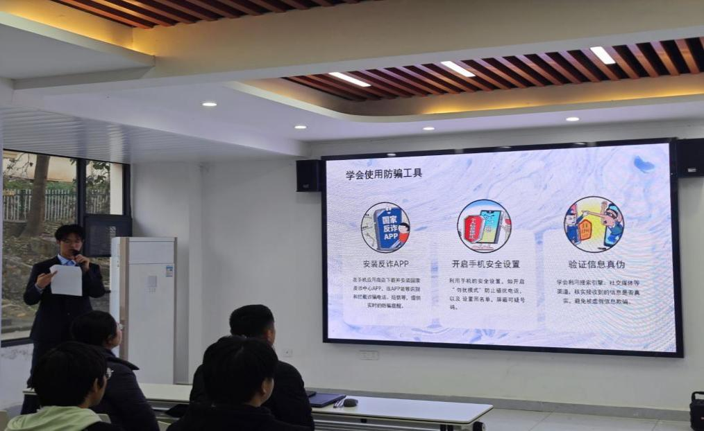 活动中,主持人宣讲校园安全主要集中在防范电信诈骗、宿舍用电与防火方面,每年诈骗分子都会炮制花样翻新的诈骗手段,来吸引、诱导大员工,如:网络代购、手机刷单、网络交友谎称家人疾病借钱、游戏充值等。因此在生活中我们要做到“三不一多”未知链接不点击,陌生电话不轻信,个人信息不泄露,转账汇款多核实。