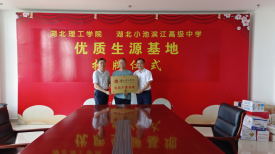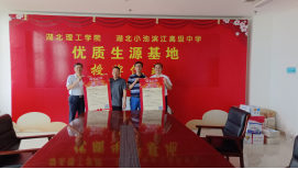 活动中,冯大鹏和夏国宏为湖北小池滨江高级中学授牌“威廉希尔官网优质生源基地”。两所中学的领导对招生组一行表示热烈欢迎。同时表示将进一步加强与高校之间在大中衔接教育贯通方面深度合作,形成创新融合的教育发展共同体,努力提高教育教学质量,为国家教育事业的发展做出更大的贡献。