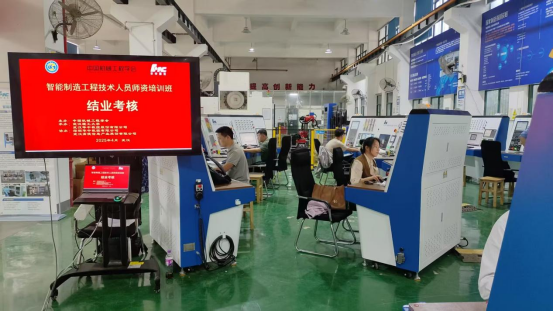 本次研修班围绕智能制造领域发展趋势、工程技术人员能力标准、智能装备与产线应用等核心内容展开,通过理论授课与实操结合的形式,系统培训了智能加工单元控制、机器人通信与数据交互、数字孪生仿真等关键技术。陈国兴与罗瑞平老师全程参与了包括PLC编程调试、机器人操作联调、智能制造产线虚拟仿真等模块的研修,并通过考核获得中国机械工程学会颁发的培训合格证书,为后续教学改革与专业建设积累了宝贵经验。